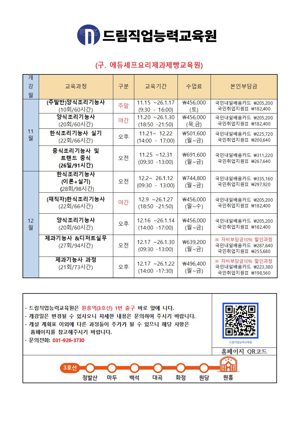 드림직업능력교육원 과정개설계획 11.12