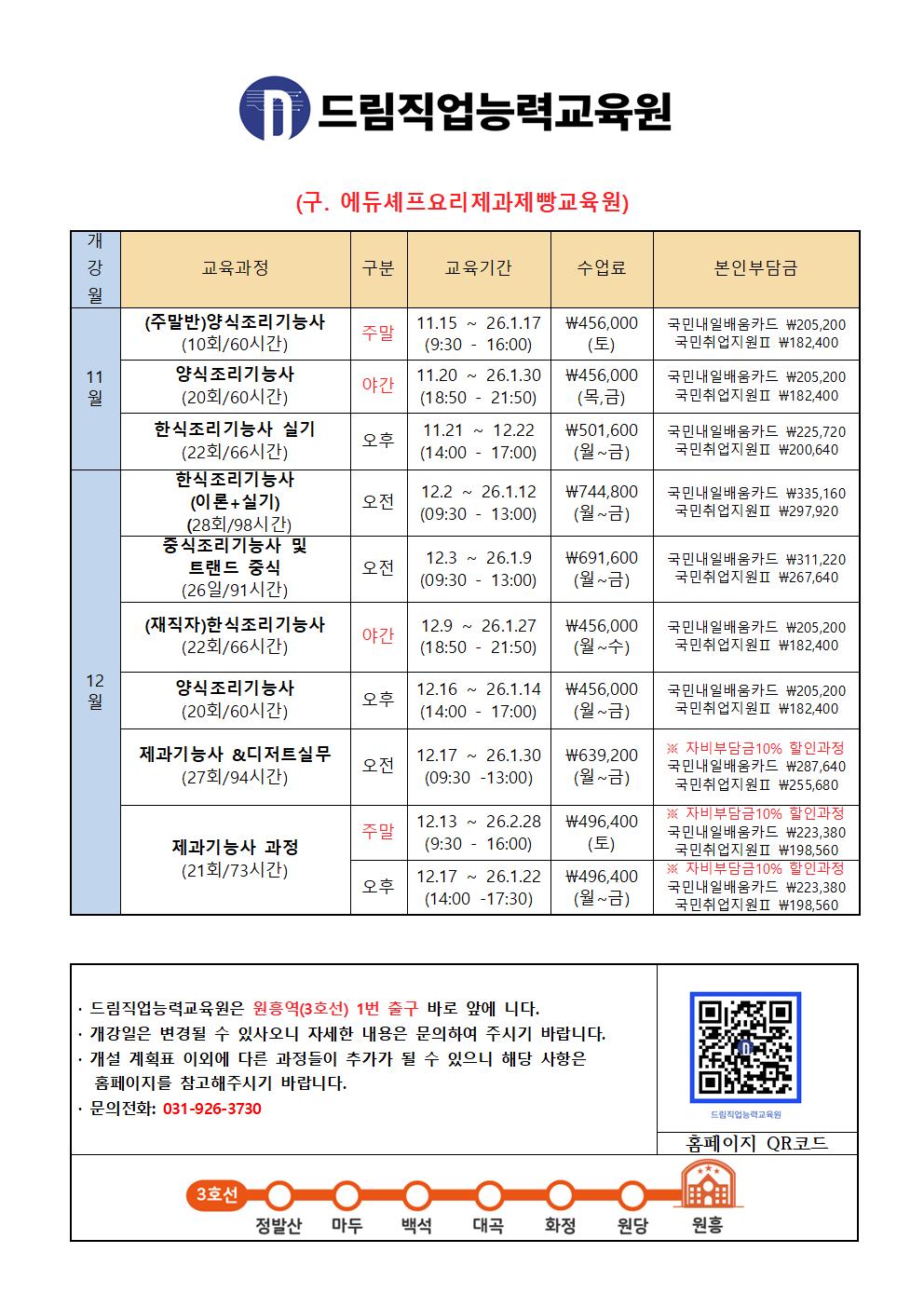 드림직업능력교육원 과정개설계획 11.12