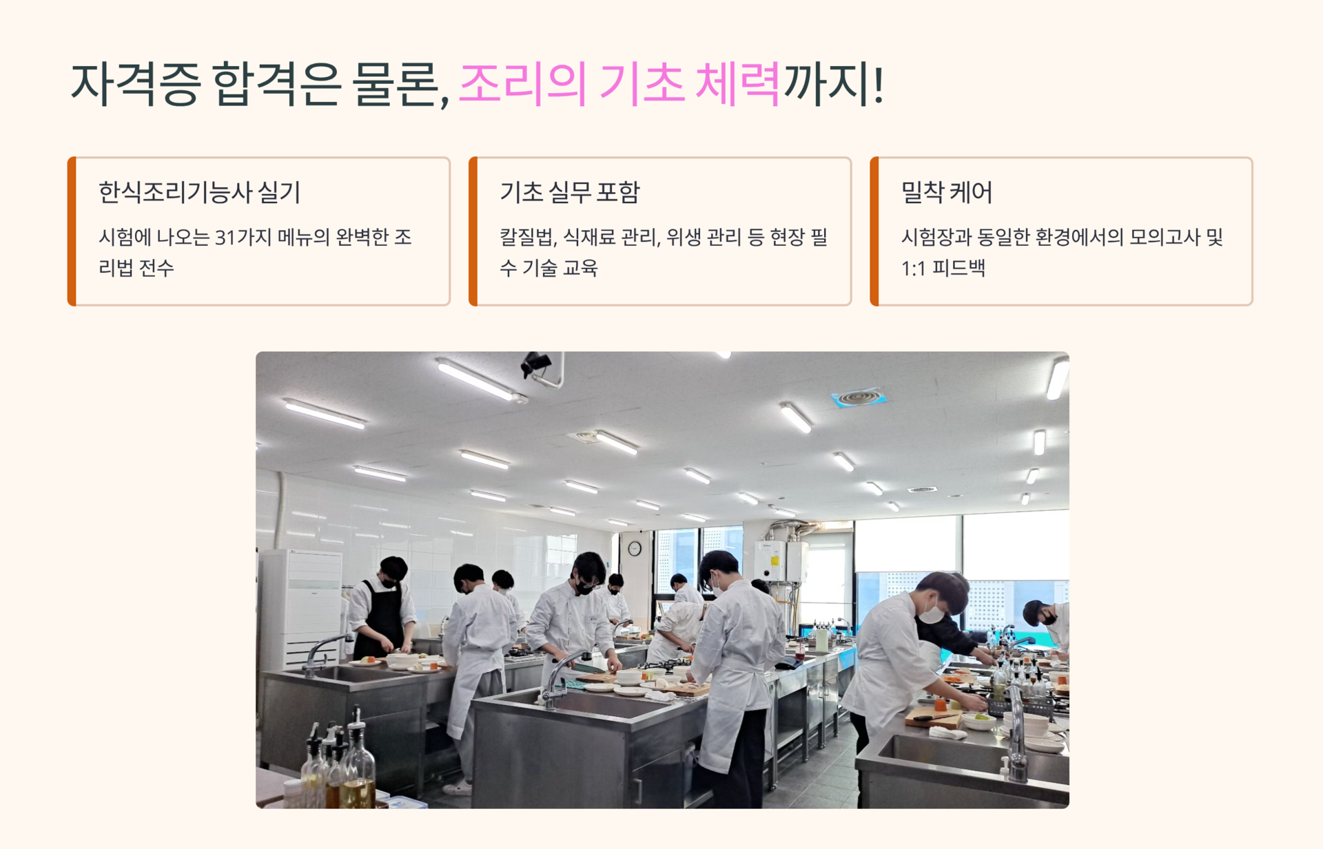기능사 자격증은 전문조리사로 가는 첫걸음이자, 누구나 응시할 수 있는 국가기술자격의 기초등급입니다.
