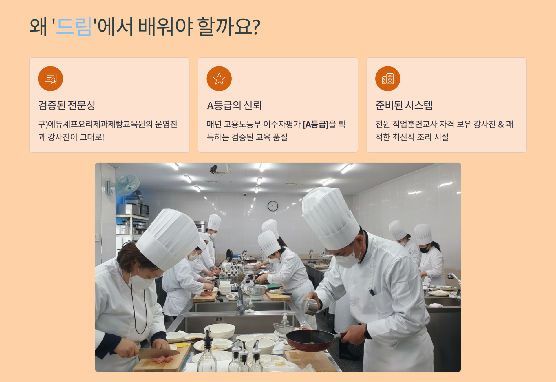 | 취업분야 | 외식업체, 단체급식, 공공기관 및 복지시설 조리사, 호텔조리부, 리조트, 위탁급식업체, 푸드서비스 전문업체등 |