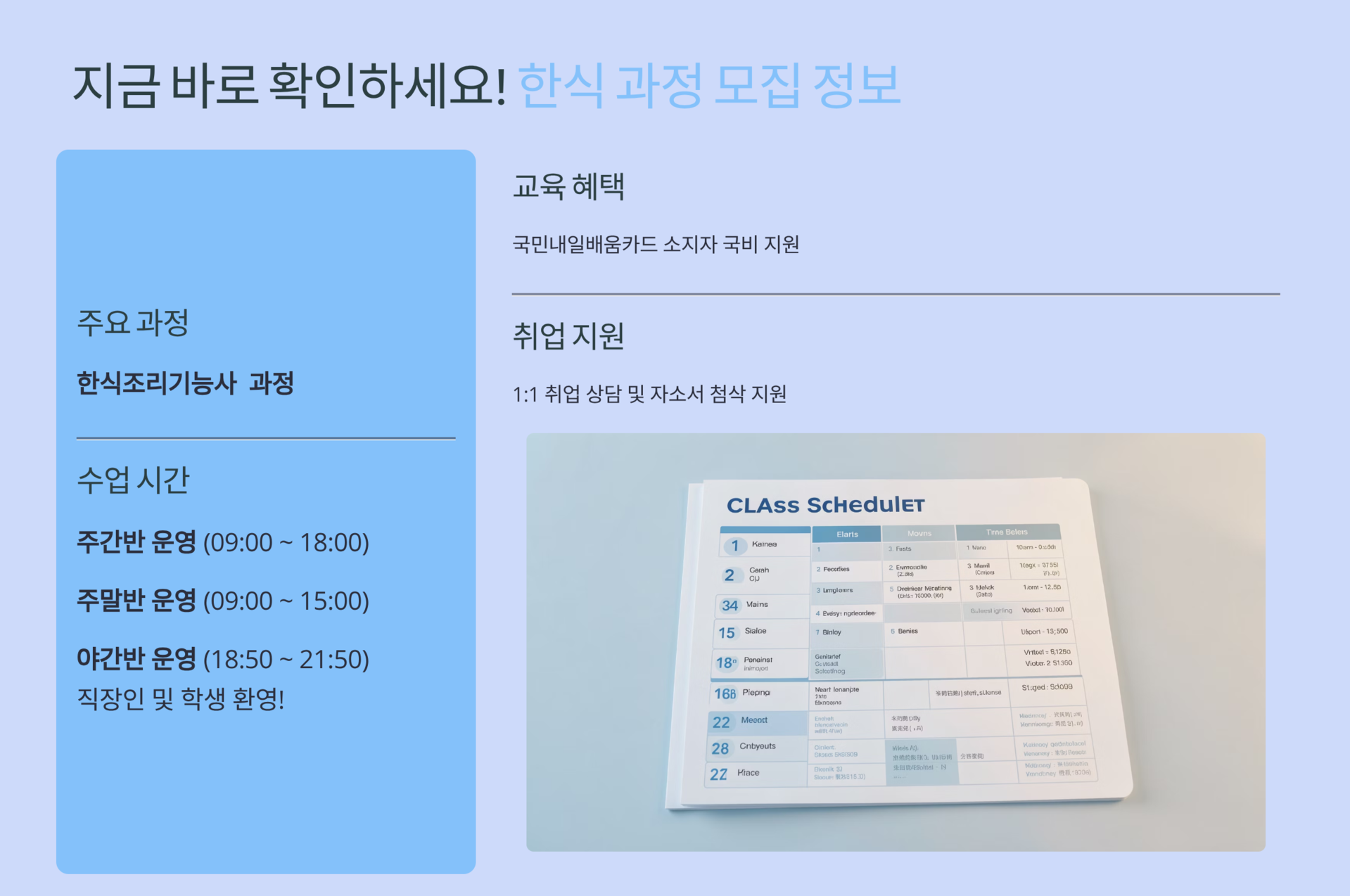 ☆ 수업기간 : 26년 3월 3일 ~ 4월 13일★ 수업시간 : 09:30 ~ 13:00 (월~금)