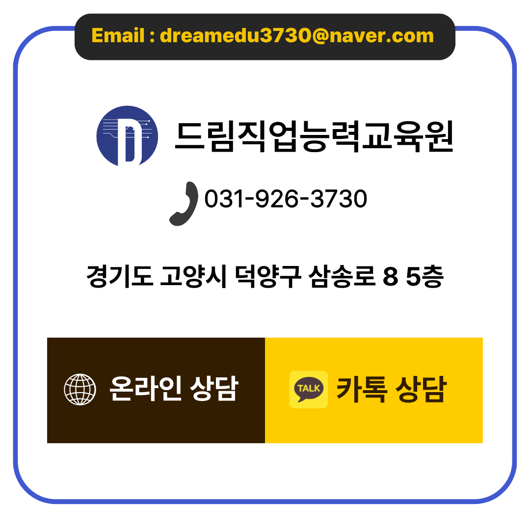 ☆ 수업기간 : 26년 4월 7일 ~ 6월 1일★ 수업시간 : 18:50 ~ 21:50 (월, 화, 수)